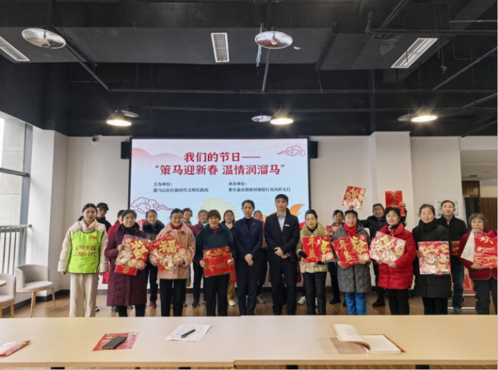 新春佳节临近,为弘扬民俗文化,丰富群众精神文化生活,凝聚基层治理合力点点金,近日,重庆两江新区双凤桥街道溜马山社区新时代文明实践站联合重庆渝北银座村镇银行双凤桥支行,在社区文化室开展“策马迎新春温情润溜马”主题活动。